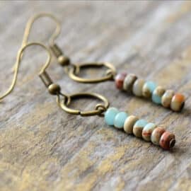L’empilement des pierres crée un effet visuel fascinant, apportant une explosion de couleurs et de textures à ces boucles d’oreilles uniques.