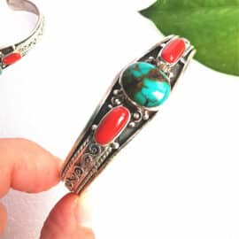 Le bracelet en argent fait à la main incrusté de turquoise naturelle est un véritable chef-d’œuvre artisanal.