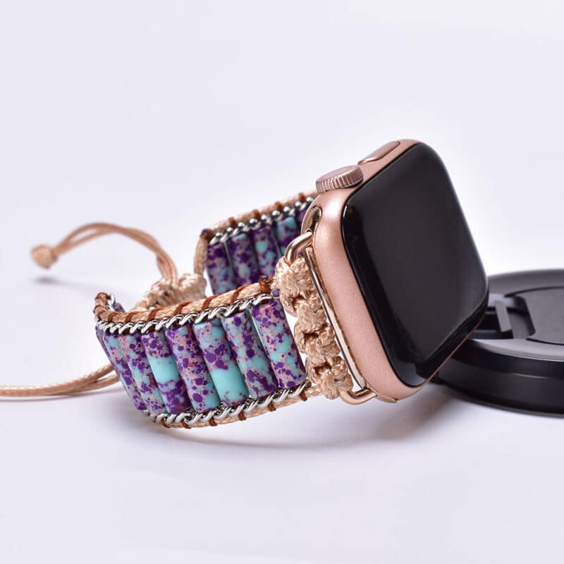 Plongez dans l’univers de l’élégance et de l’authenticité avec notre bracelet pour montre Apple en sodalite et corde. Fait à la main avec soin, ce bracelet ajoute une touche de raffinement à votre montre préférée. Les perles de sodalite bleues et violettes, toutes naturelles, captivent le regard avec leur éclat subtil et leur beauté unique.