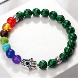 Explorez les profondeurs de votre être avec notre bracelet sept chakras en perles de malachite, une véritable œuvre d’art énergétique. Chaque perle est soigneusement sélectionnée pour représenter un chakra, invitant à l’harmonie intérieure.