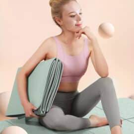 Explorez de nouveaux horizons avec notre tapis de yoga pliable et antidérapant de couleur verte. Les lignes de pliage sur le tapis vous aident à ajuster votre posture et à améliorer l’alignement de votre corps pendant vos séances de yoga.