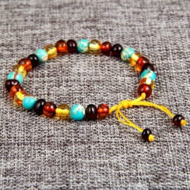 Chaque perle est soigneusement sélectionnée pour son charme naturel et son éclat éblouissant. La corde ajustable offre un ajustement parfait, s’adaptant à tous les poignets avec confort et élégance. Ce bracelet en ambre naturel est l’accessoire idéal pour ajouter une touche de glamour et de beauté unique à votre style.